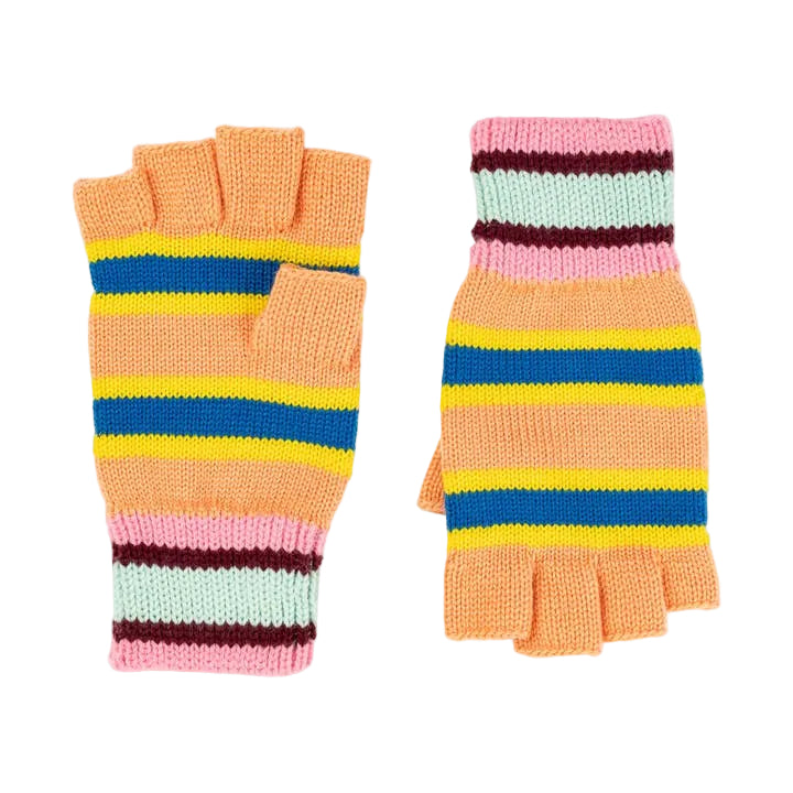 Zipper Stripe Fingerless Gloves - Peach Cobalt