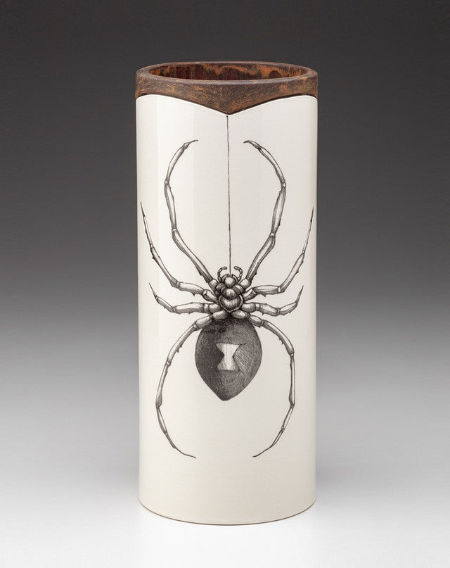 Laura Zindel's vases are made from earthenware. They are double glazed on the inside to prevent water leakage. The bottom of the vase is unglazed and may ‘sweat’ or become damp when the vase is filled with water. We recommend putting a coaster or other protective surface under the vase if it is placed on a wood surface.