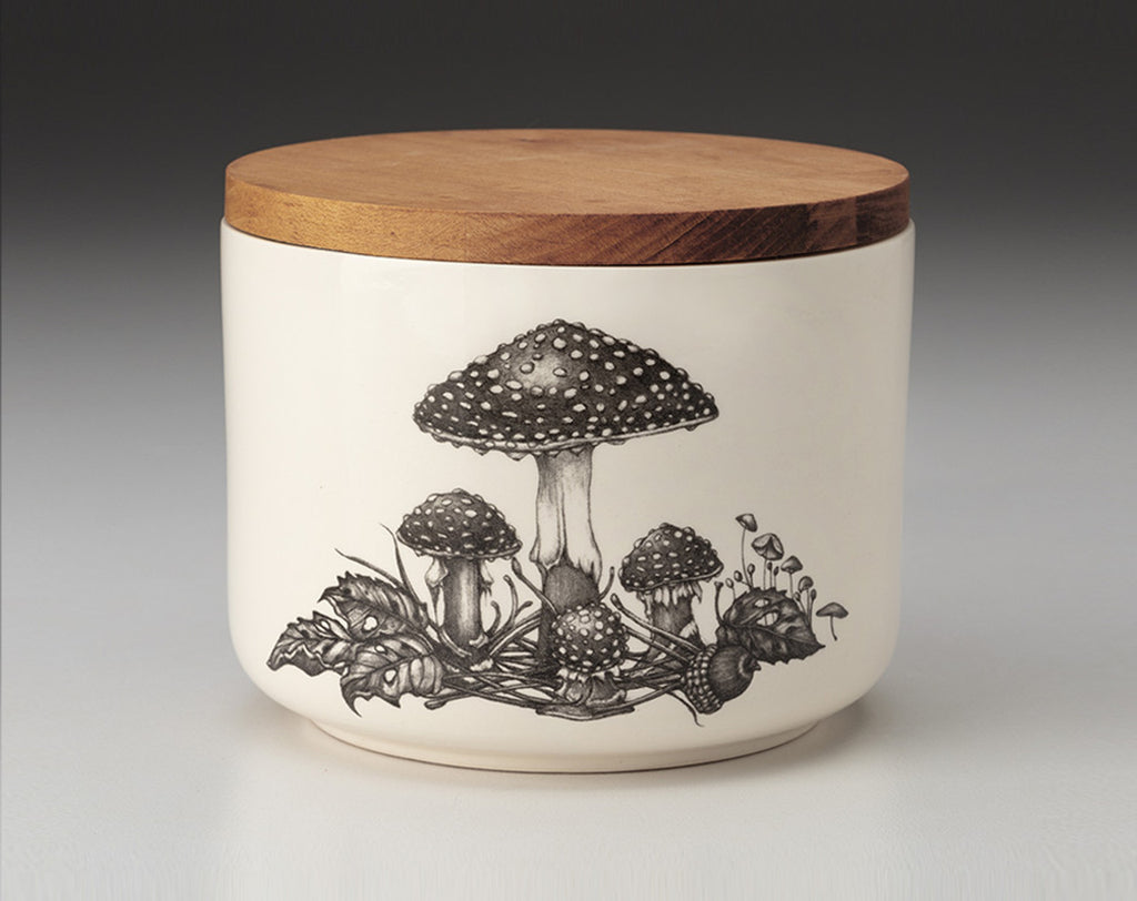 Laura Zindel's handmade canisters are stylish storage for every room in your home. Each one is crafted from earthenware, brushed with hand mixed glazes and finished with Laura's signature illustrations. Locally sourced Maple Wood lids with an artisan finish seal to keep your pantry items fresh.