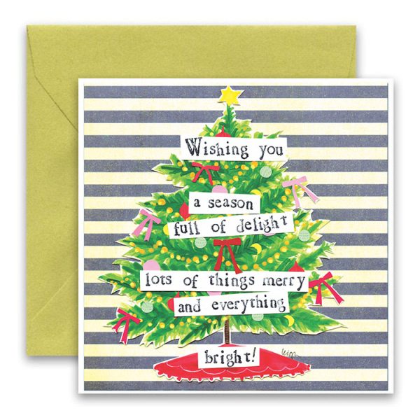 This card reads: “Wishing you a season full of delight, lots of things merry and everything bright!”