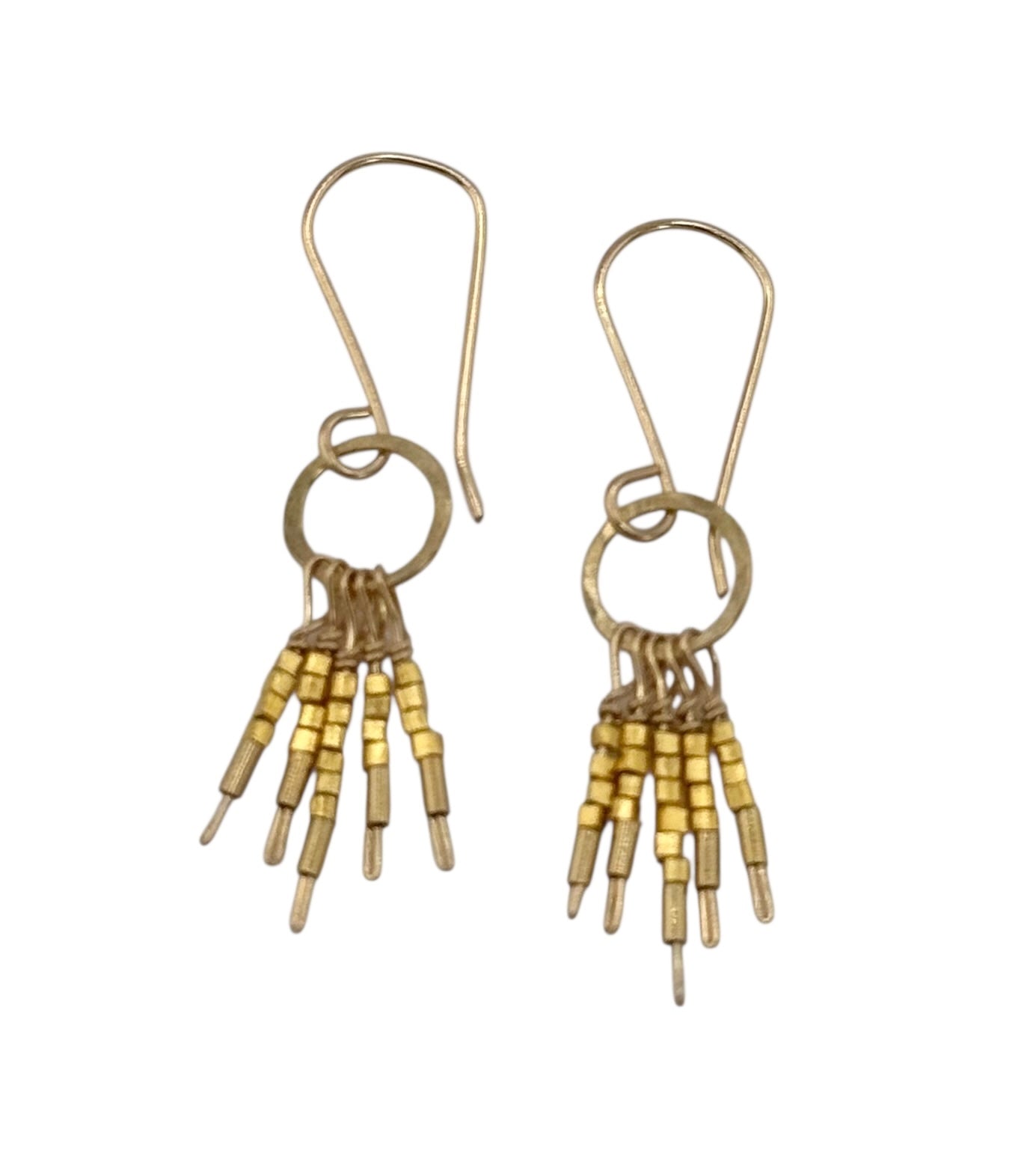 Dazzling fringe earrings made with vermeil beads hanging from a high polish gold fill circle. Will add a sense of drama to any outfit!