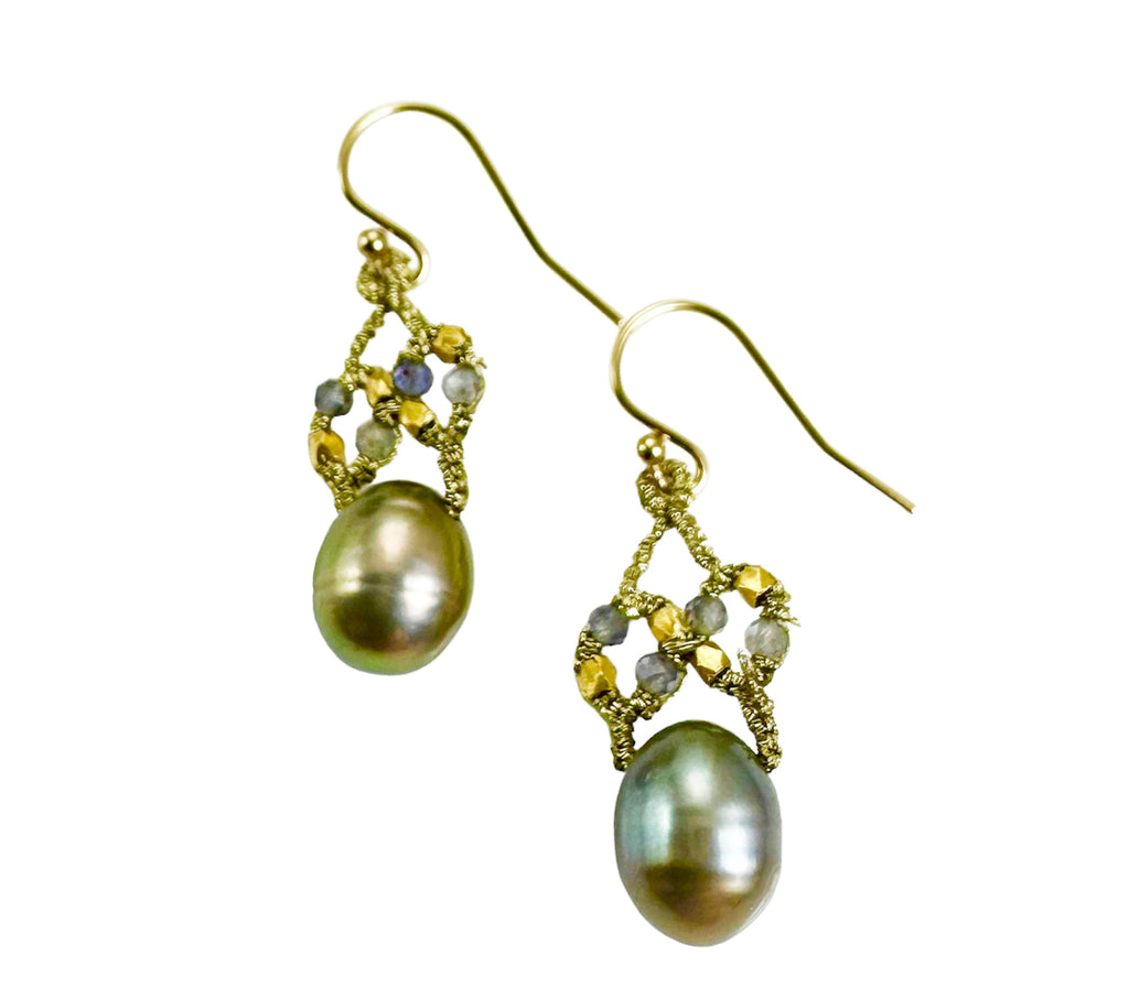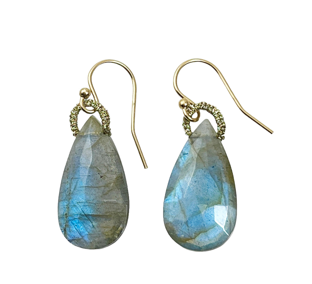 Woven Gold Cord Labradorite Drop Earrings
