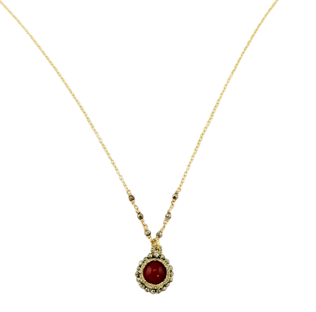 Caged Carnelian with Pyrite Orbit Necklace