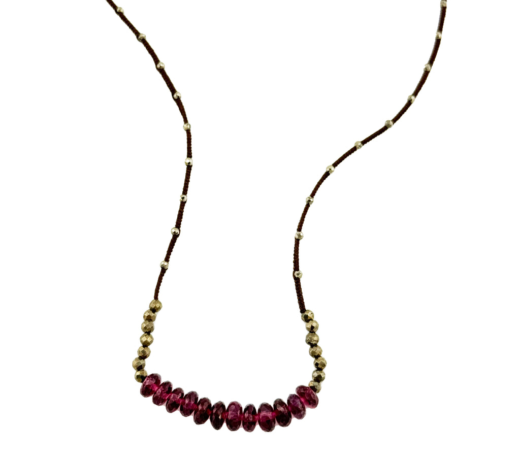 Center Garnet on Brown Silk Cord Necklace