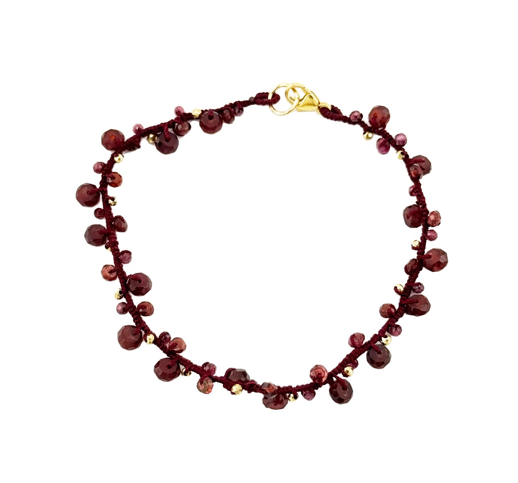 Woven Garnet and Pyrite Beaded Bracelet