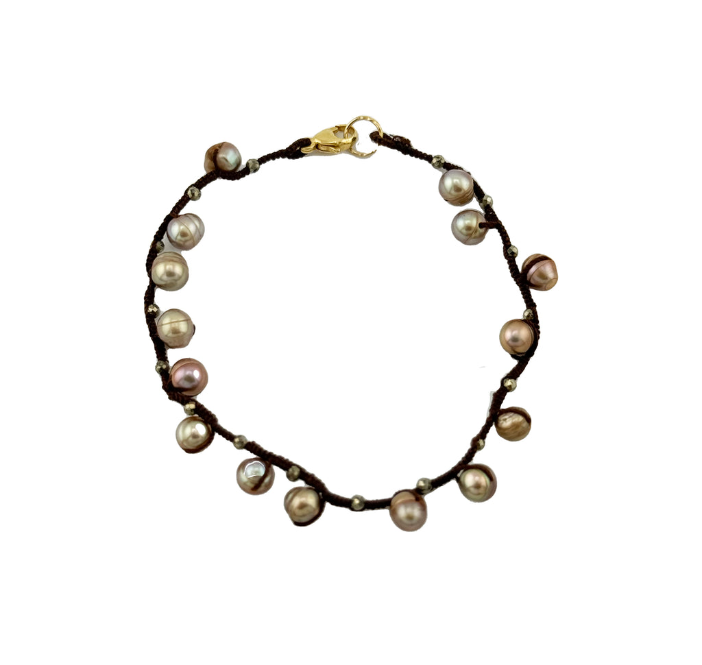 Woven Freshwater Pearl and Pyrite Beaded Bracelet