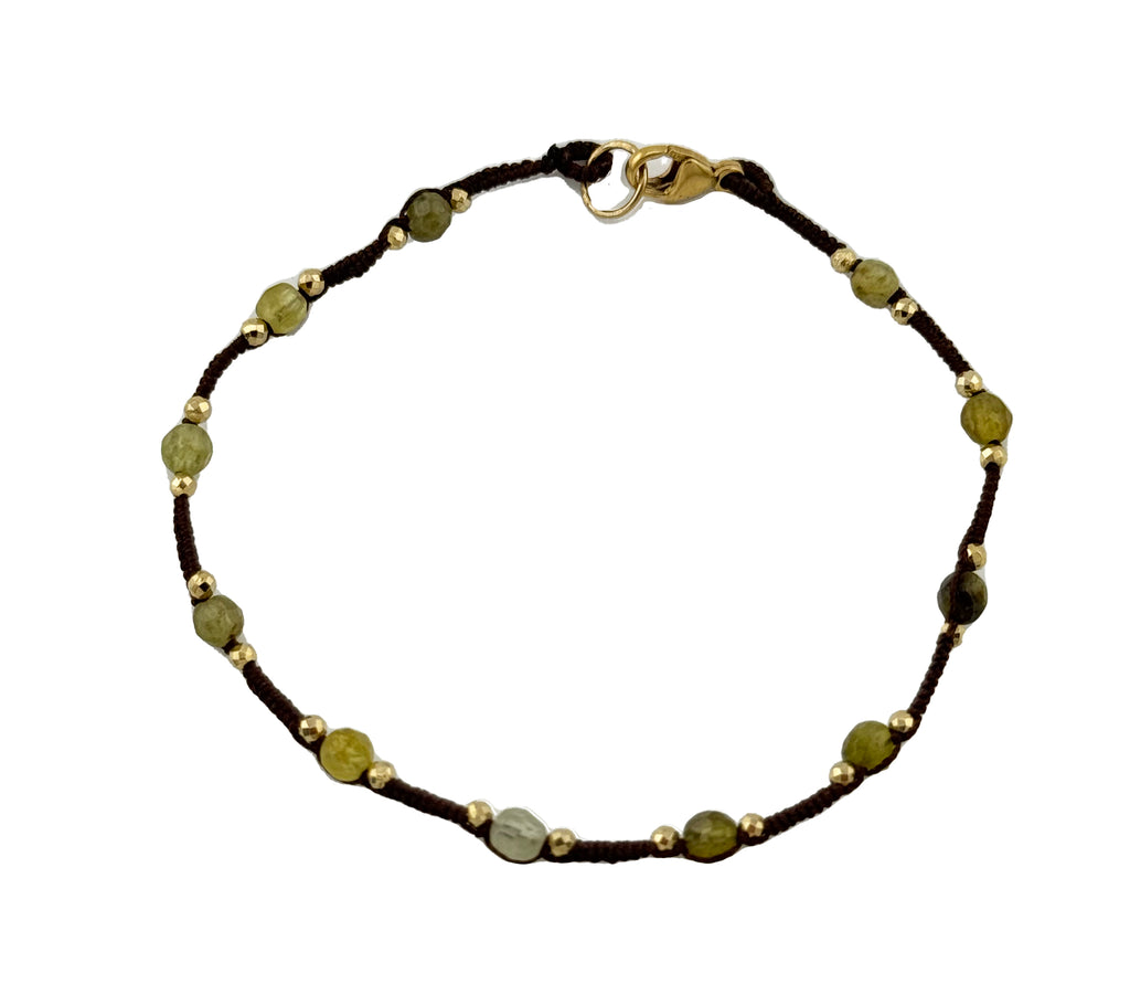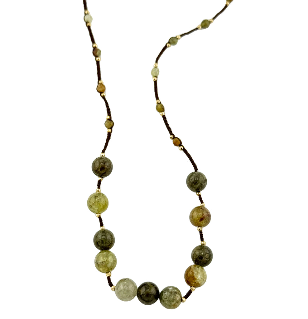 Green Garnet on Brown Silk Cord Necklace