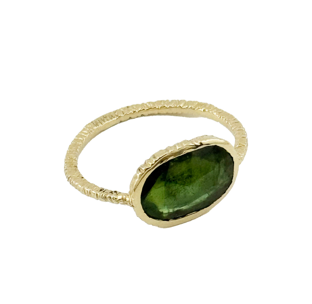 14K Textured Oval Green Tourmaline Ring