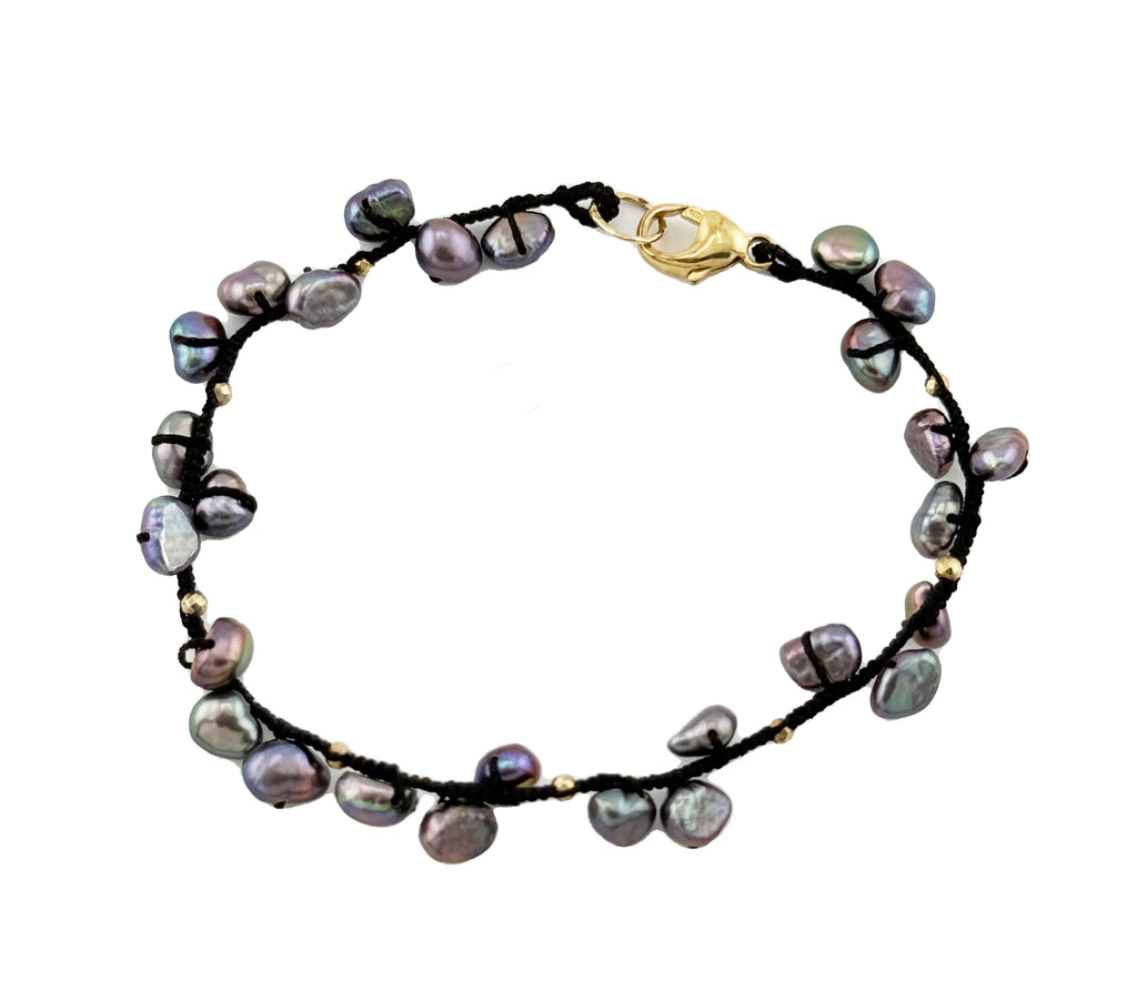 Woven Peacock Pearl and Pyrite Beaded Bracelet