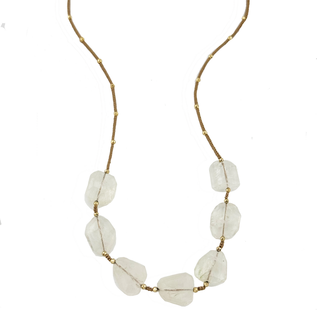 Rainbow Moonstone on Taupe Silk Cord Necklace