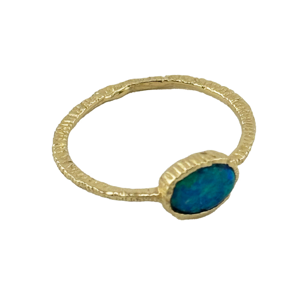 14k Rough Textured Band with Blue Opal