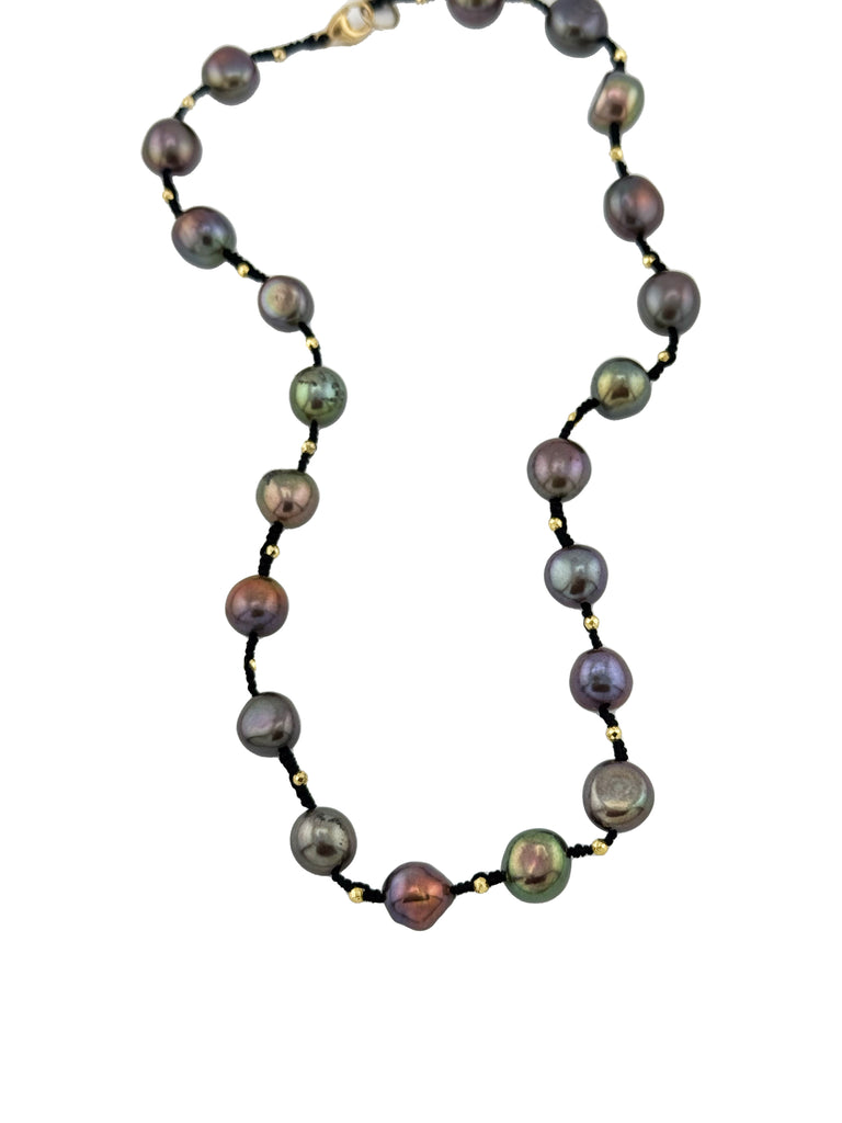 Peacock Pearls with Gold Pyrite Cord Necklace