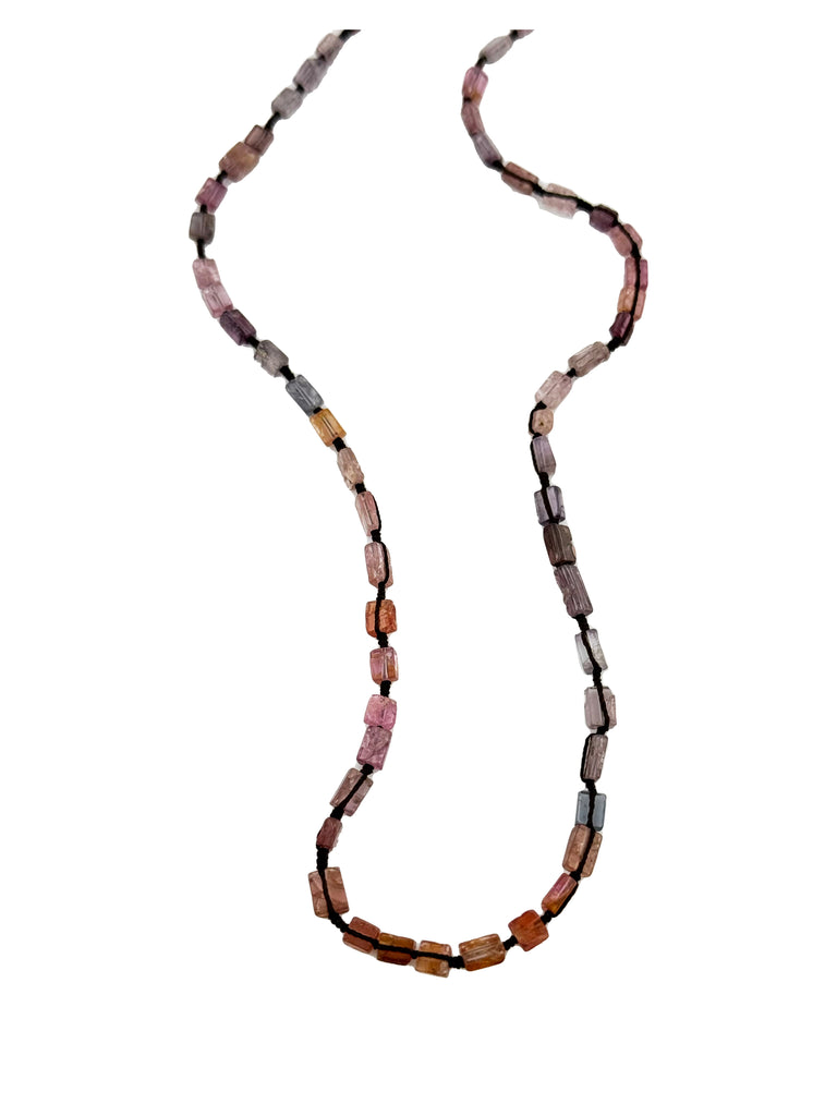 Multicolor Spinel on Grey Silk Cord Necklace