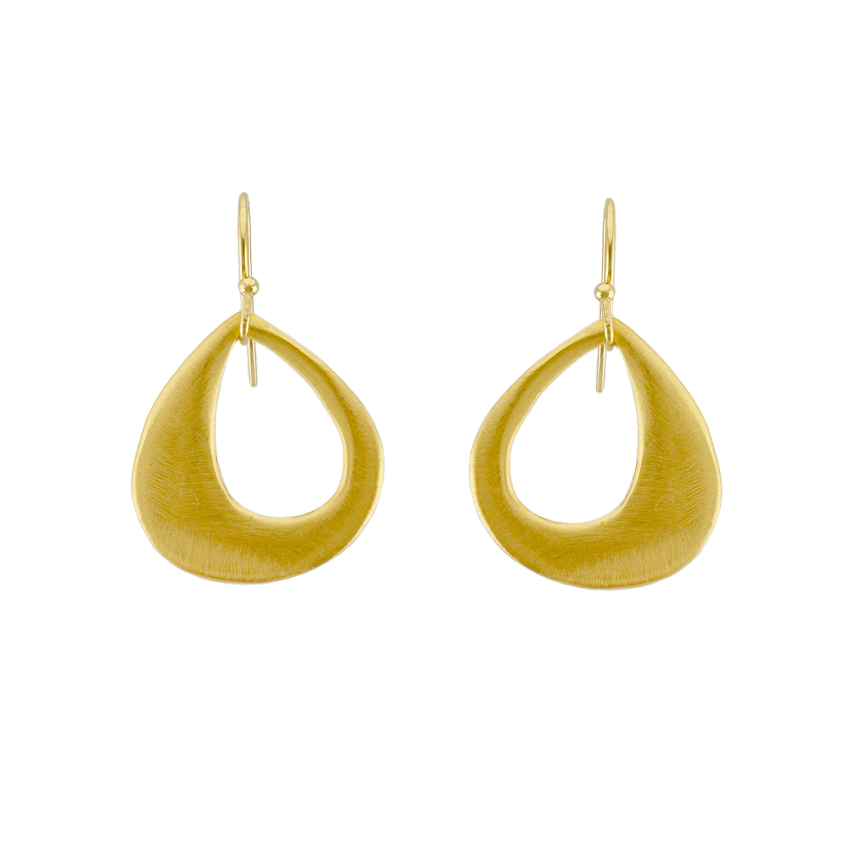 Large open drop earrings in silver or vermeil. Earrings hang 1 1/2" on balled earwires. Item# 194-04se/ve. Our vermeil is sterling silver dipped in 16k gold. Findings are sterling silver and 14k gold fill. Handmade in Oakland, CA.