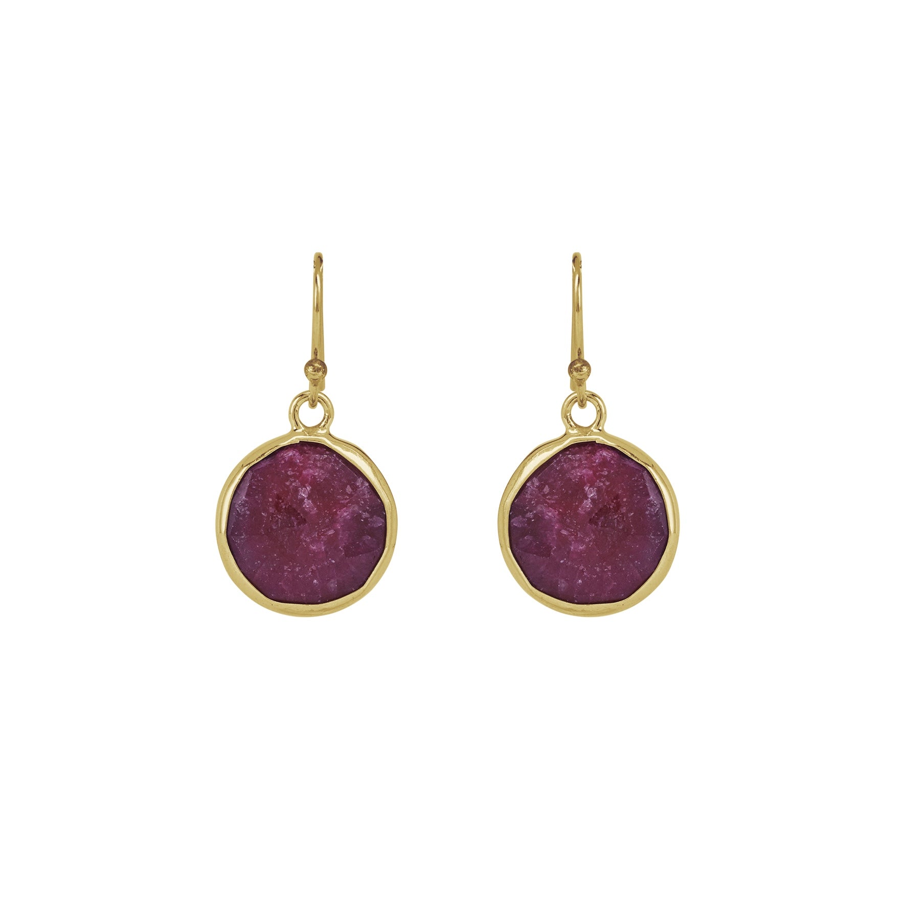 Round ruby. silver or vermeil earrings by Philippa Roberts. Earrings hang 1 1/4". Item #174-42se/ve. Our vermeil is sterling silver dipped in 16k gold. Findings are sterling silver and 14k gold fill. Handmade in Oakland, CA.
