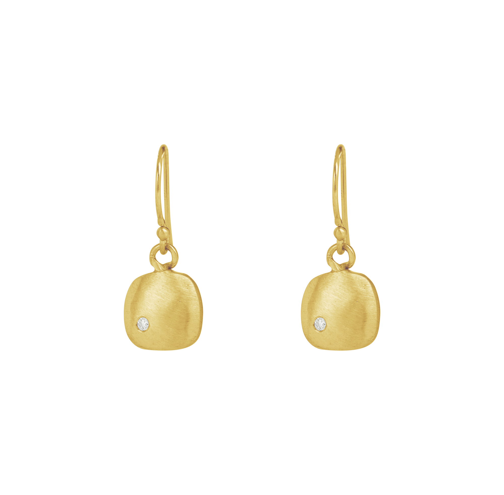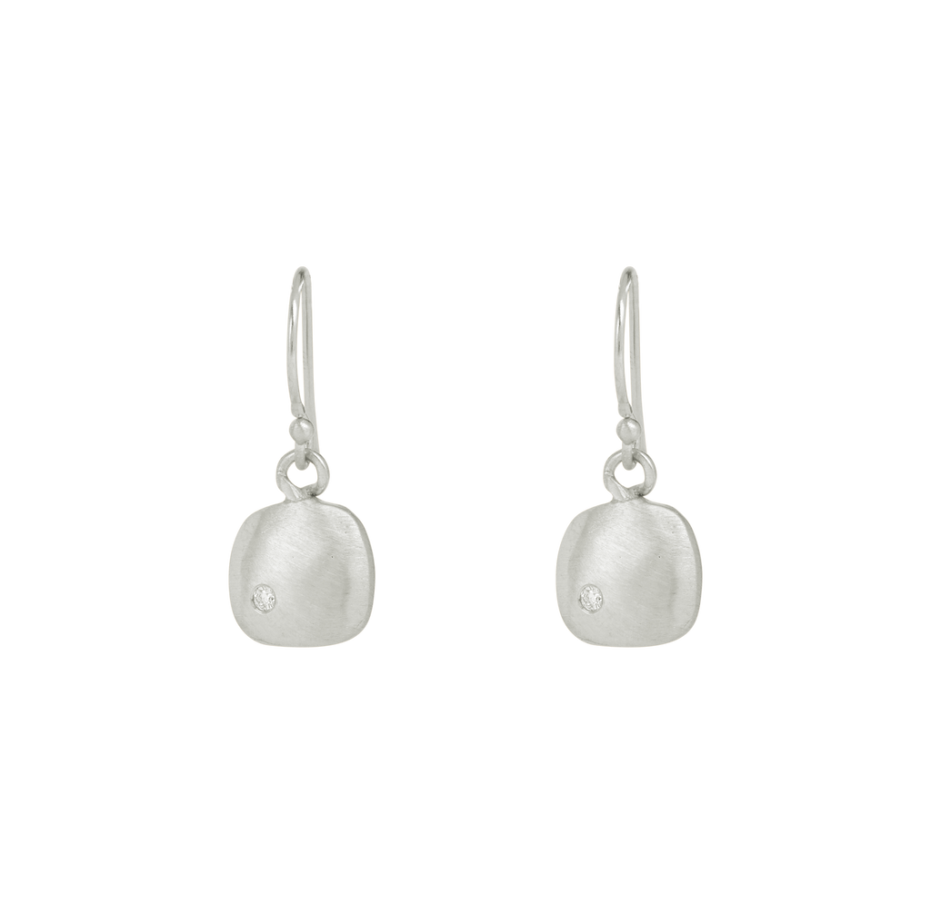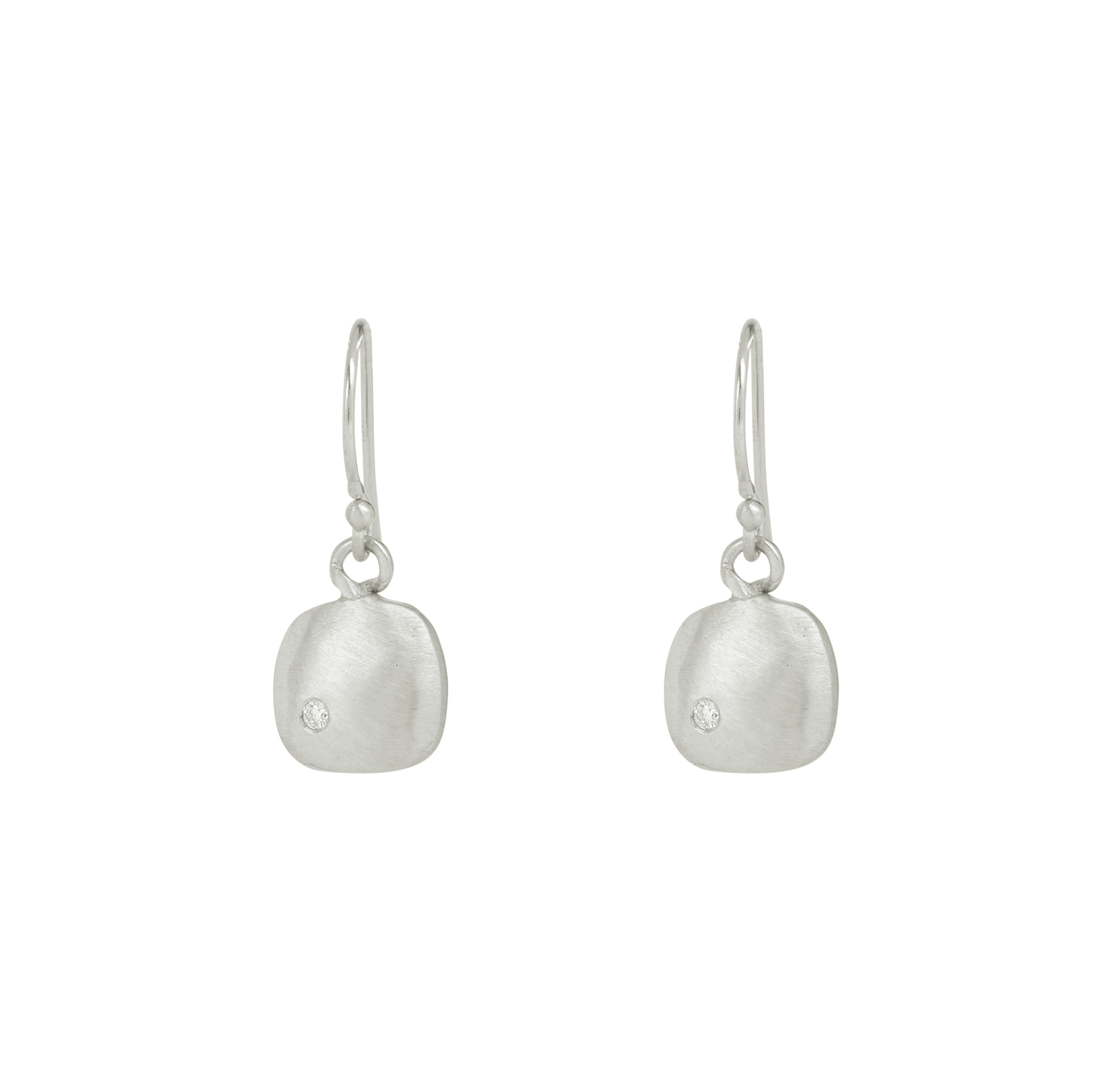 Small puffy square with diamond in silver or vermeil by Philippa Roberts. earrings hang approx 1". Our vermeil is sterling silver dipped in 16k gold. Findings are sterling silver and 14k gold fill. Handmade in Oakland, CA.