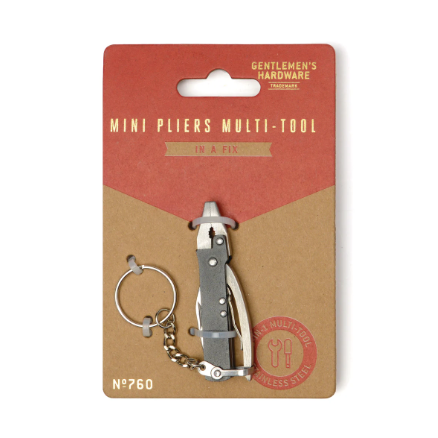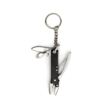 Never be left in a pinch with these clever mini pliers! This multi-tool is built to serve five functions in one, starting with a mini pair of pliers. Easily keep it on hand for any project with the keychain attachment.