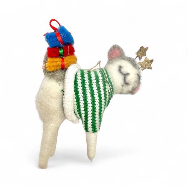 Ideal for cat lovers and anyone who appreciates a sprinkle of whimsy, this ornament adds a playful flair to your tree. Whether they're perched proudly on a branch or keeping watch over your mantel, these delightful cats are sure to bring smiles and laughter to everyone who sees them.
