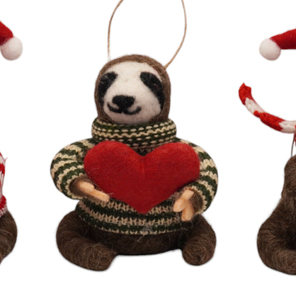 Meet the Felt Snuggle of Sloths Ornaments by Sugarboo – three sweet sloths, each bursting with festive charm and personality. Sold separately, these felt friends add a cozy, playful touch to any tree, garland, or gift. Collect your favorites or gather the whole crew – each one is a tiny dose of holiday cheer!