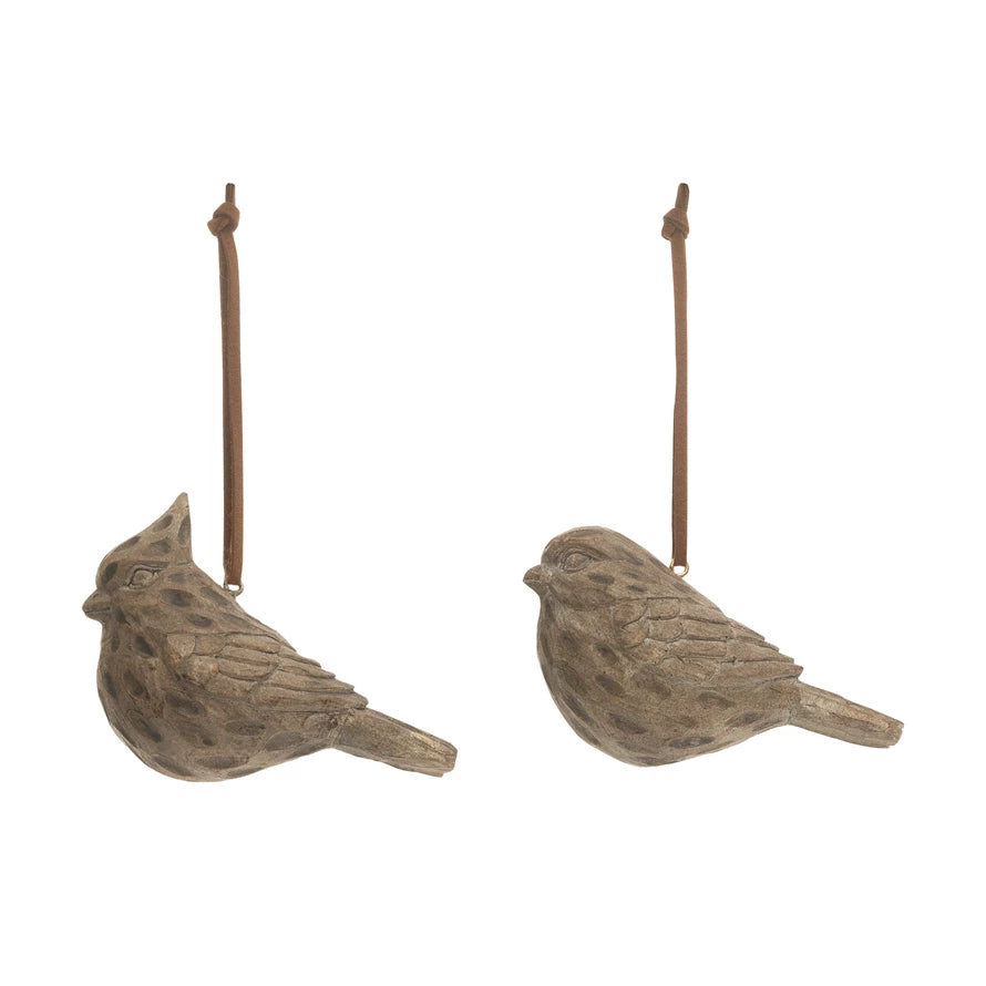 2-3/4"H - 3-3/4"H Hand-Carved Resin Bird Ornament, Wood Finish, 2 Styles