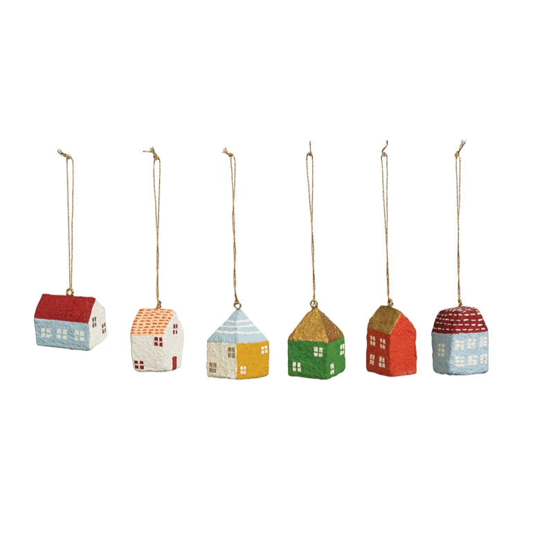 Hand-Painted Paper Mache House Ornaments - 6 Styles