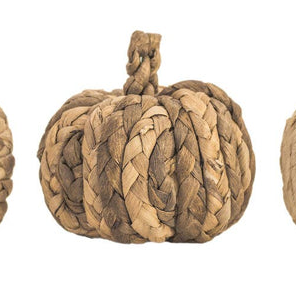 Add rustic charm to your autumn décor with these mini Natural Woven Pumpkins. Crafted from natural fibers, its textured construction brings warmth and organic appeal to tabletops, mantels, or seasonal displays. A subtle yet festive accent piece that complements any home.  3 Styles sold separately.