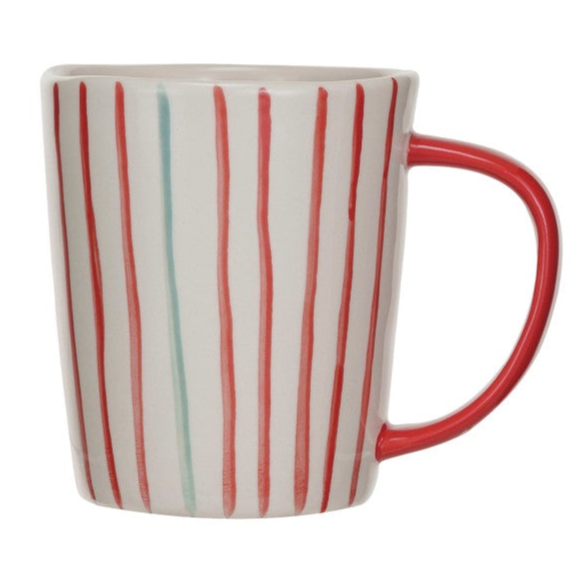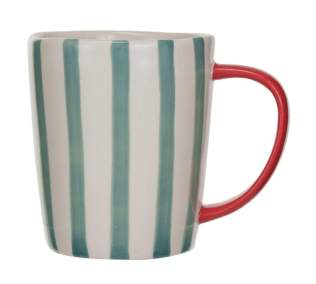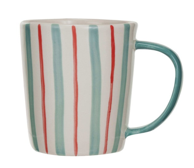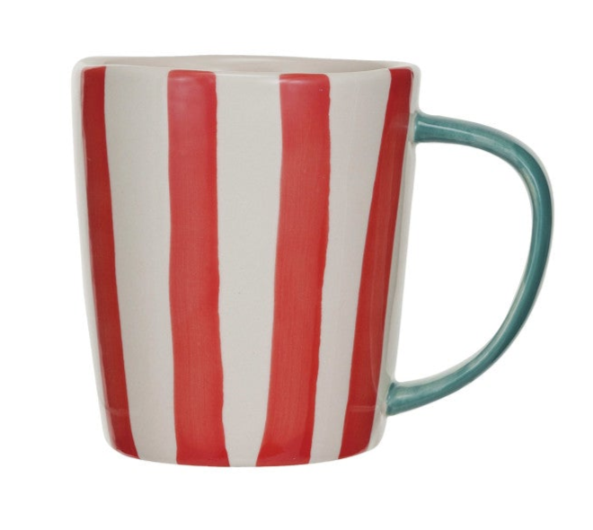 Red & Aqua Striped Stoneware Mug in 4 Styles