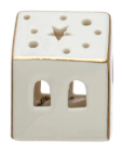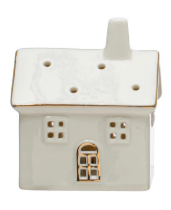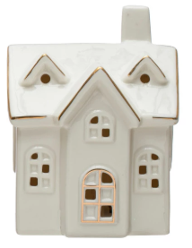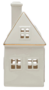 Stoneware houses that light up with LED lights and have gold electroplated details. A beautiful and elegant decoration that can create a cozy and festive atmosphere in the home. Four Sizes to create a festive village!