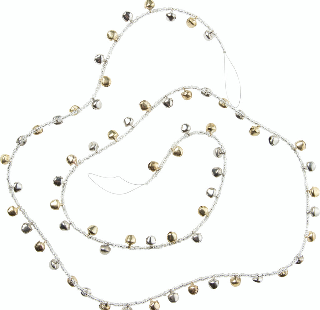 Silver and Gold Jingle Bell and Glass Bead Garland