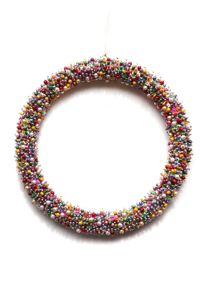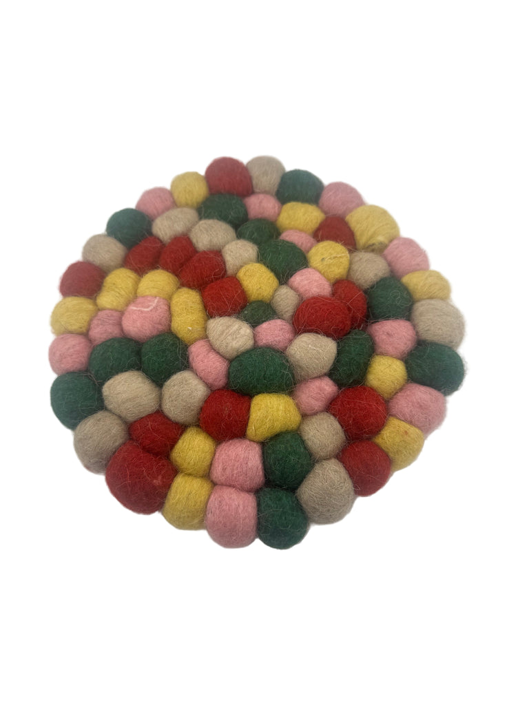 Handmade Green Wool Felt Wreath Ornament with Pom Poms