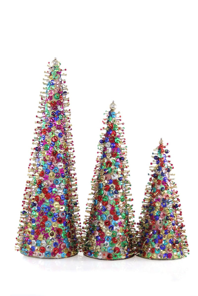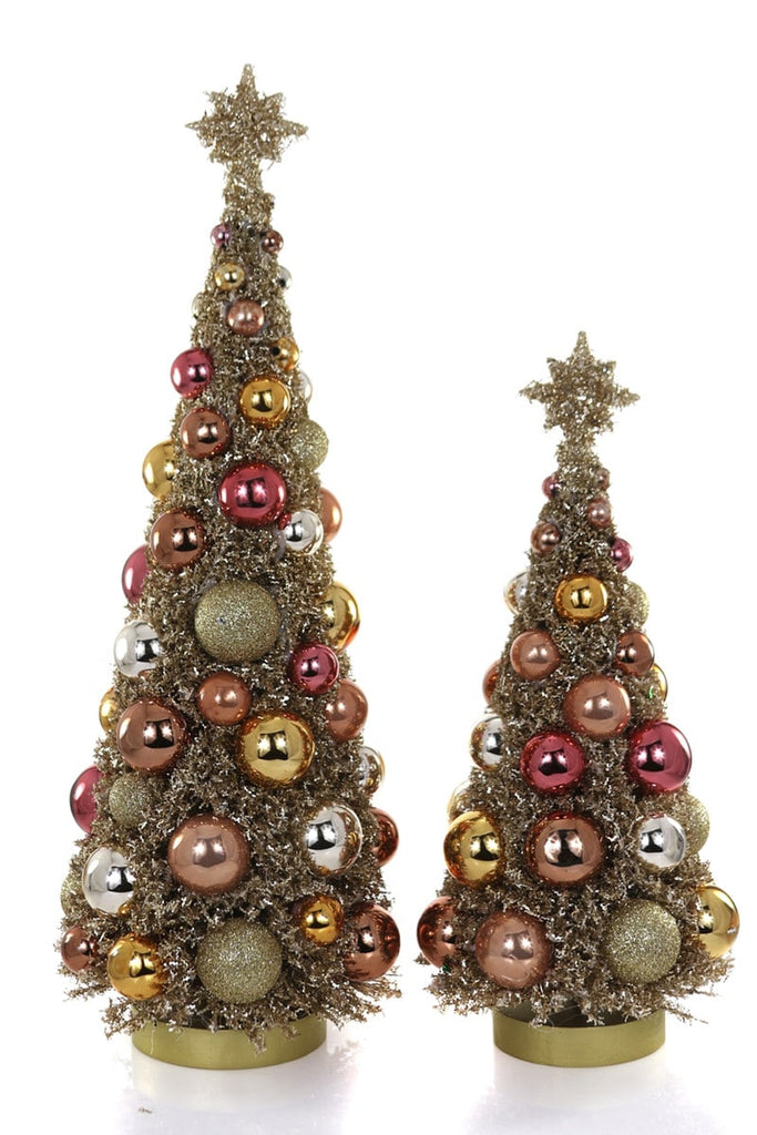 Small Silver Tinsel Tree with Multi Colored Ornaments