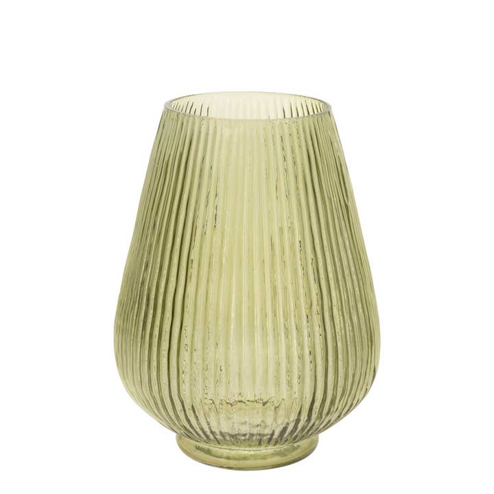 Crafted from quality glass, this sage-toned vase features delicate ribbed fluting that cascades down its graceful teardrop form. The soft, luminous finish adds warmth and dimension to any space—whether arranged with fresh stems or displayed as a standalone sculptural piece. Its subtle color and textured surface layer effortlessly into modern, traditional, or eclectic interiors.