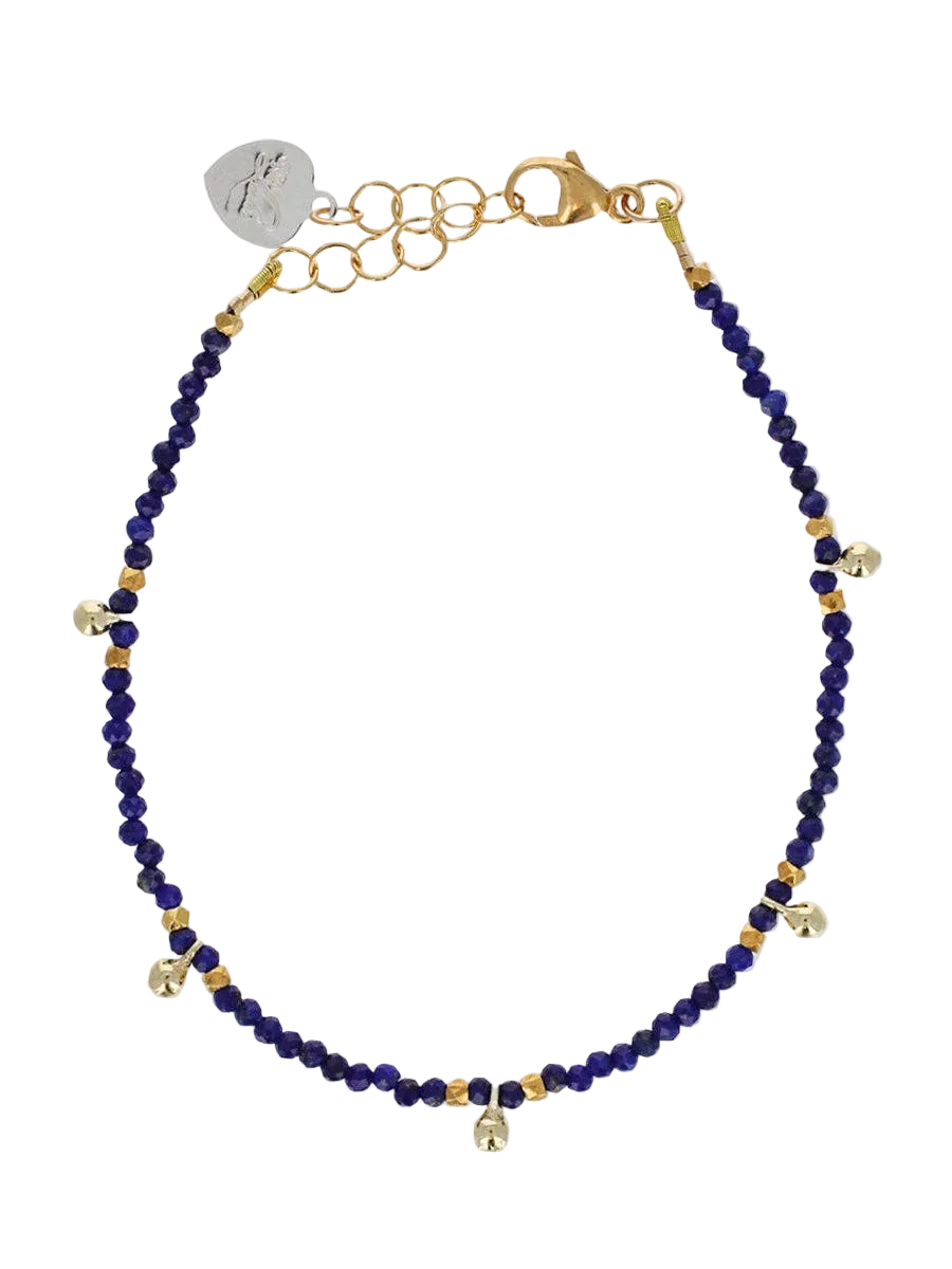 Lulu Designs' Palace Bracelet is a simple, sparkly piece with a touch of charm. Petite lapis seed beads are accented with 18k gold vermeil details that resemble tiny bells, adding a playful, delicate touch. Perfect for everyday wear or layering.