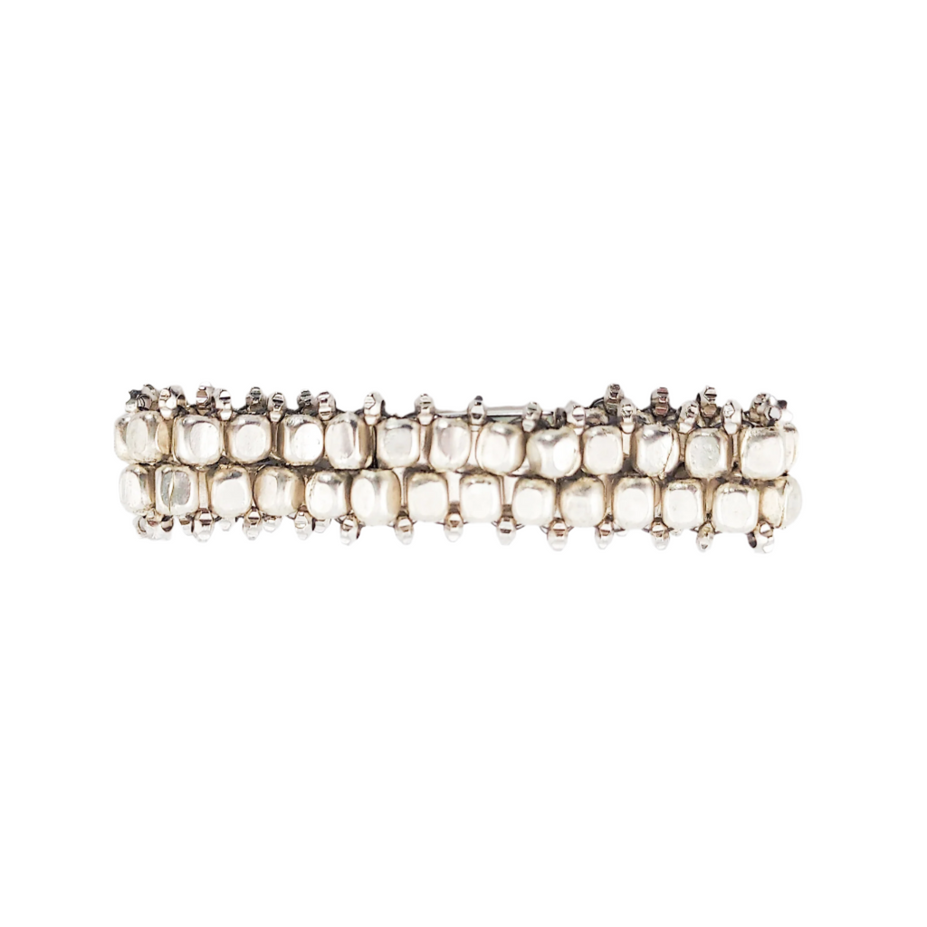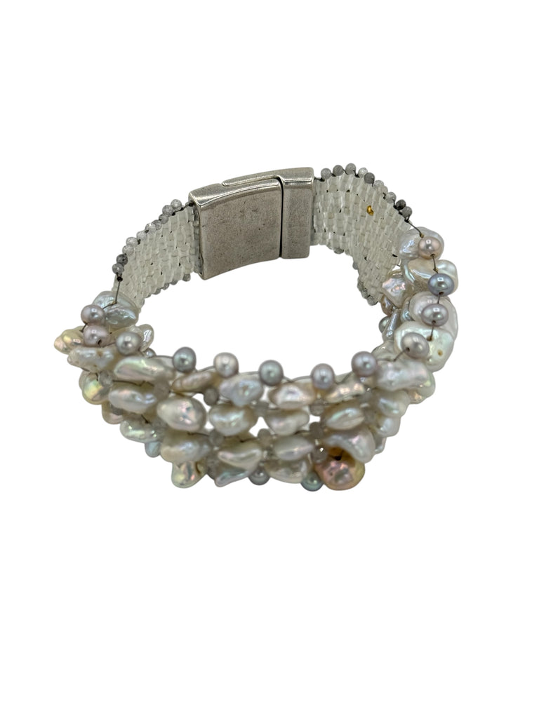 Tiny Peacock Rice Pearls on Black Leather Half Cuff