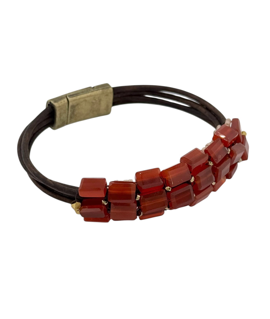 Green Quartz Tiles on Driftwood Leather Bracelet