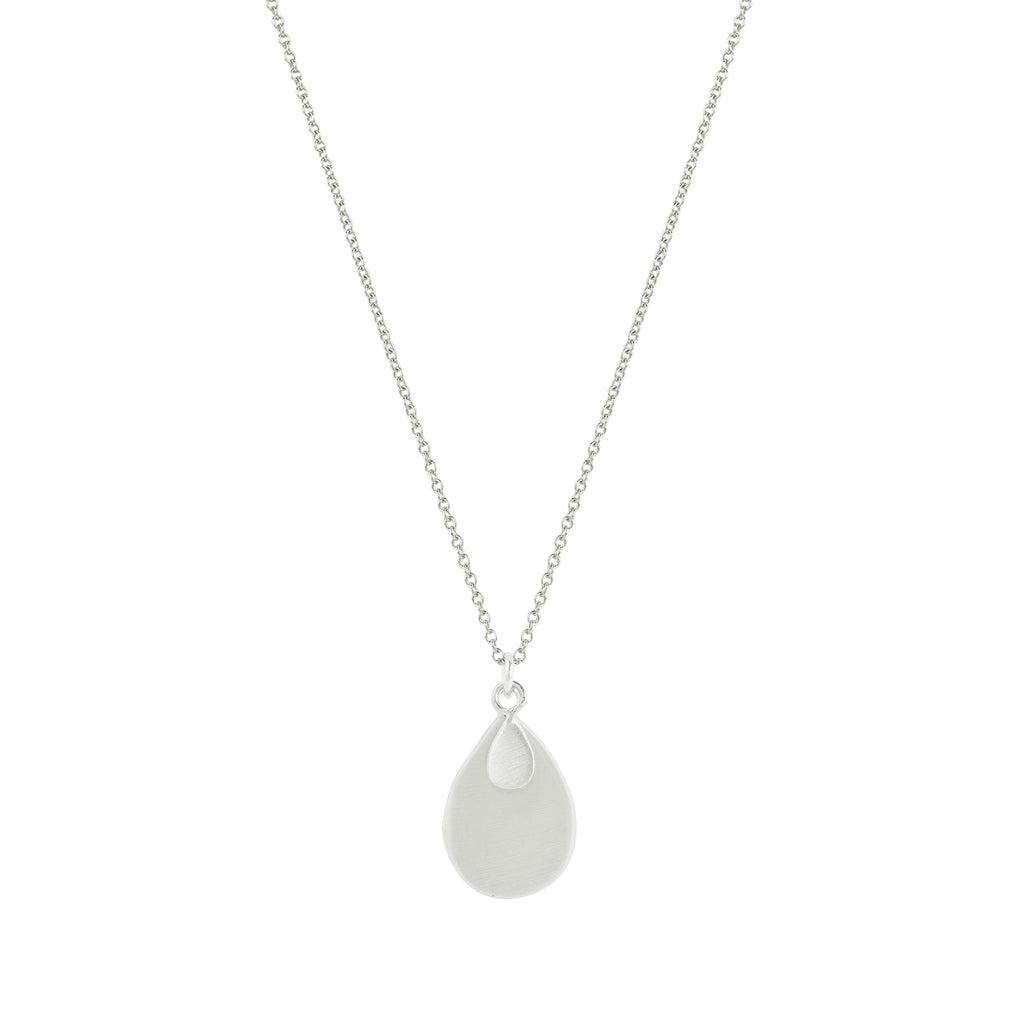 Double drops in silver, vermeil, or mixed metal necklace by Philippa Roberts. Pendant hangs approx 3/4" on a 16" cable chain with 2" extender. Item# 169-05n/sn/vn. Our vermeil is sterling silver dipped in 16k gold. Chains are sterling silver and 14k gold fill.