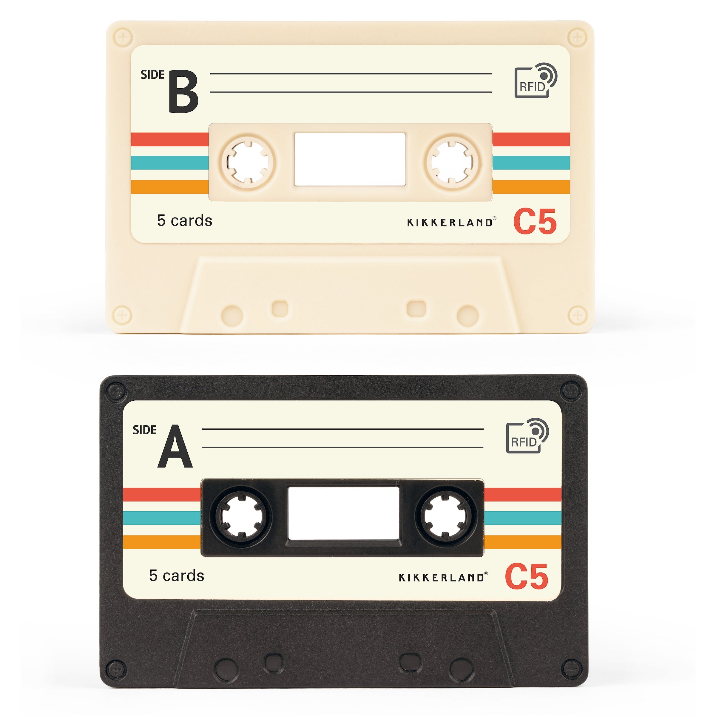 Show off your vintage flair with this pop-up carholder inspired by classic cassette tapes. Holds up to 4 credit cards that easily pop-up with the push of a clever pull tab. Black and white assorted.