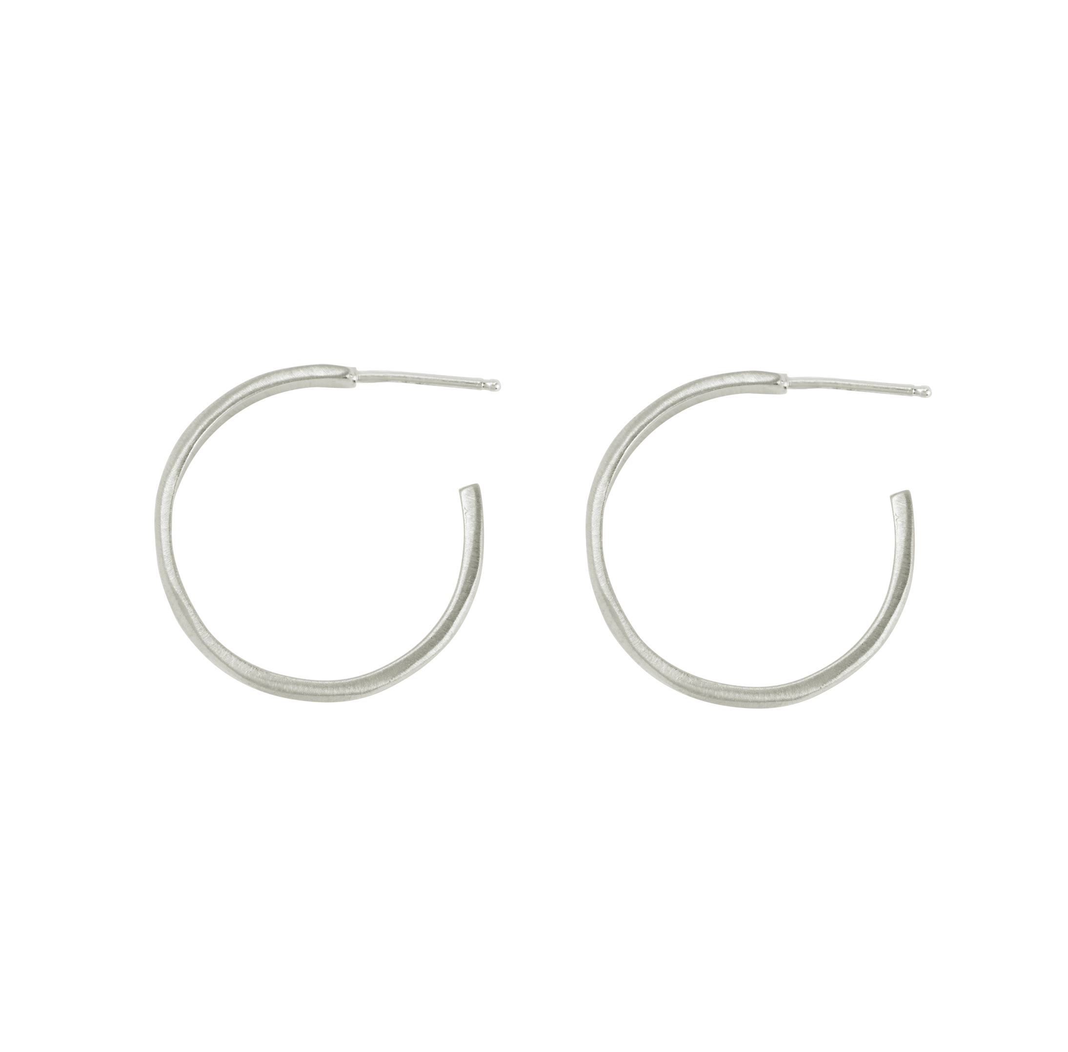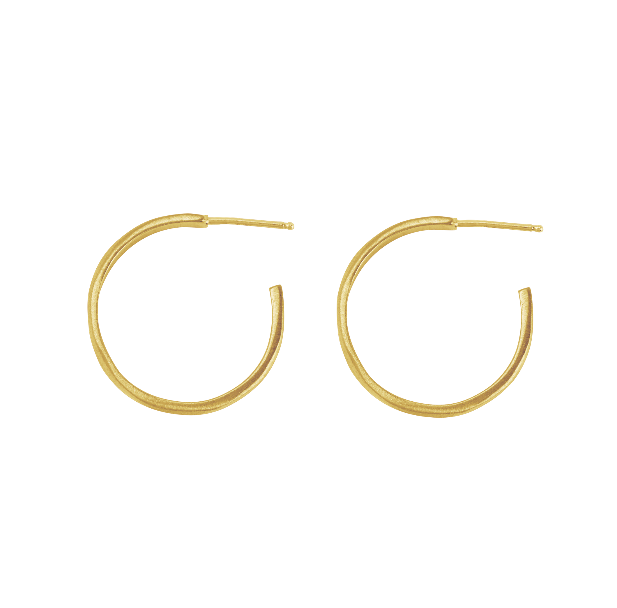 Thin hoops in sterling silver or vermeil by Philippa Roberts. Earrings Hang approx. 7/8". Item # 295se/ve. Our vermeil is sterling silver dipped in 16k gold. Findings are sterling silver and 14k gold fill. Handmade in Oakland, CA.