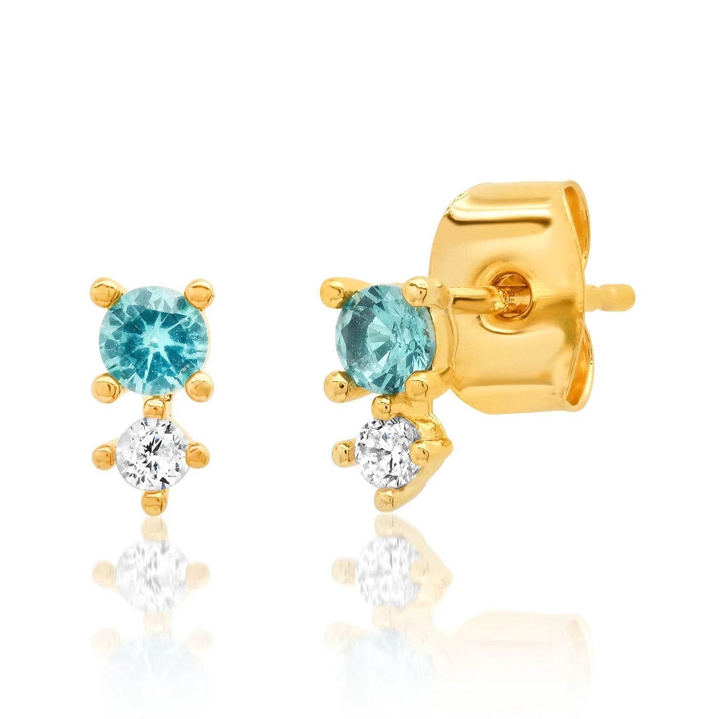Add a touch of cool elegance to your everyday look with these Aqua CZ Studs. Featuring a delicate duo of prong-set cubic zirconia — one in serene aqua and the other in classic clear — these studs strike the perfect balance between subtle sparkle and fresh color.