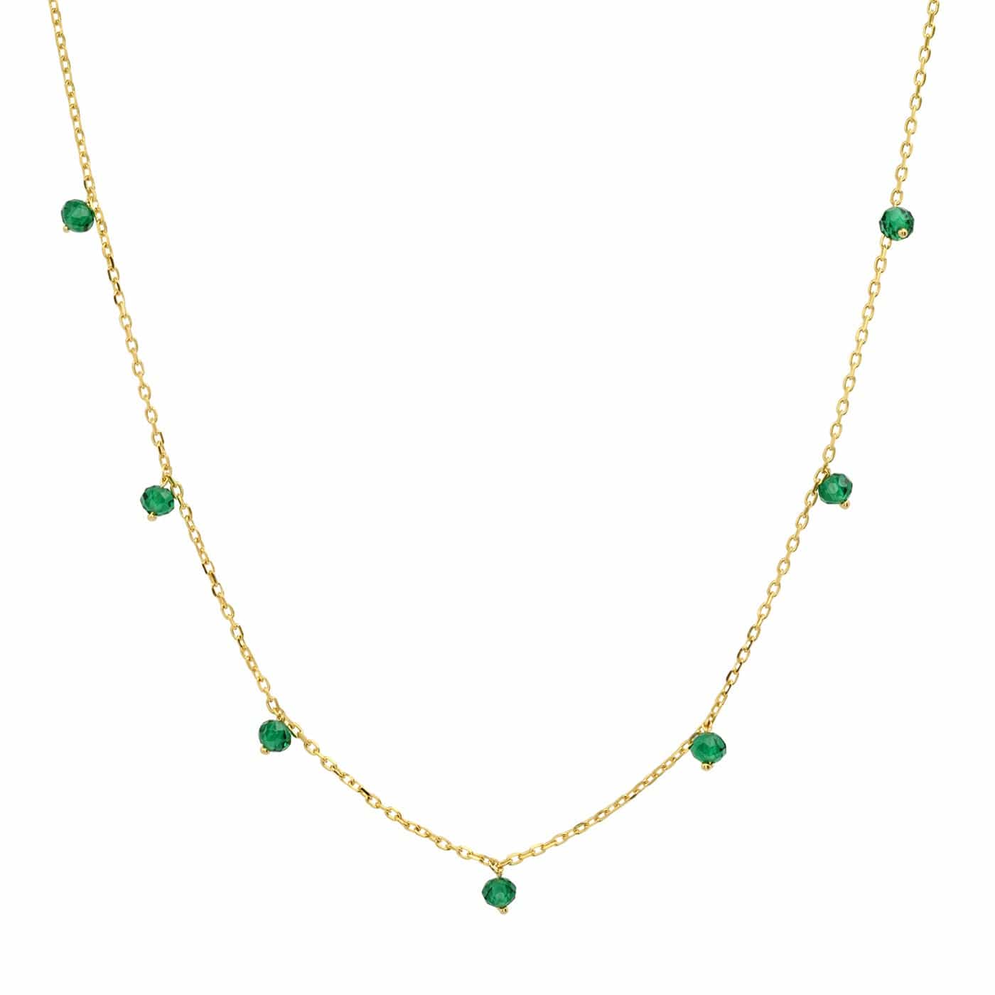 A little glam goes a long way with Tai's Emerald Droplet Station Necklace. This delicate gold vermeil chain features sparkling green CZ stones for a subtle pop of color and elegance. Perfect on its own or layered up, it’s your new go-to for elevating any look—day or night.