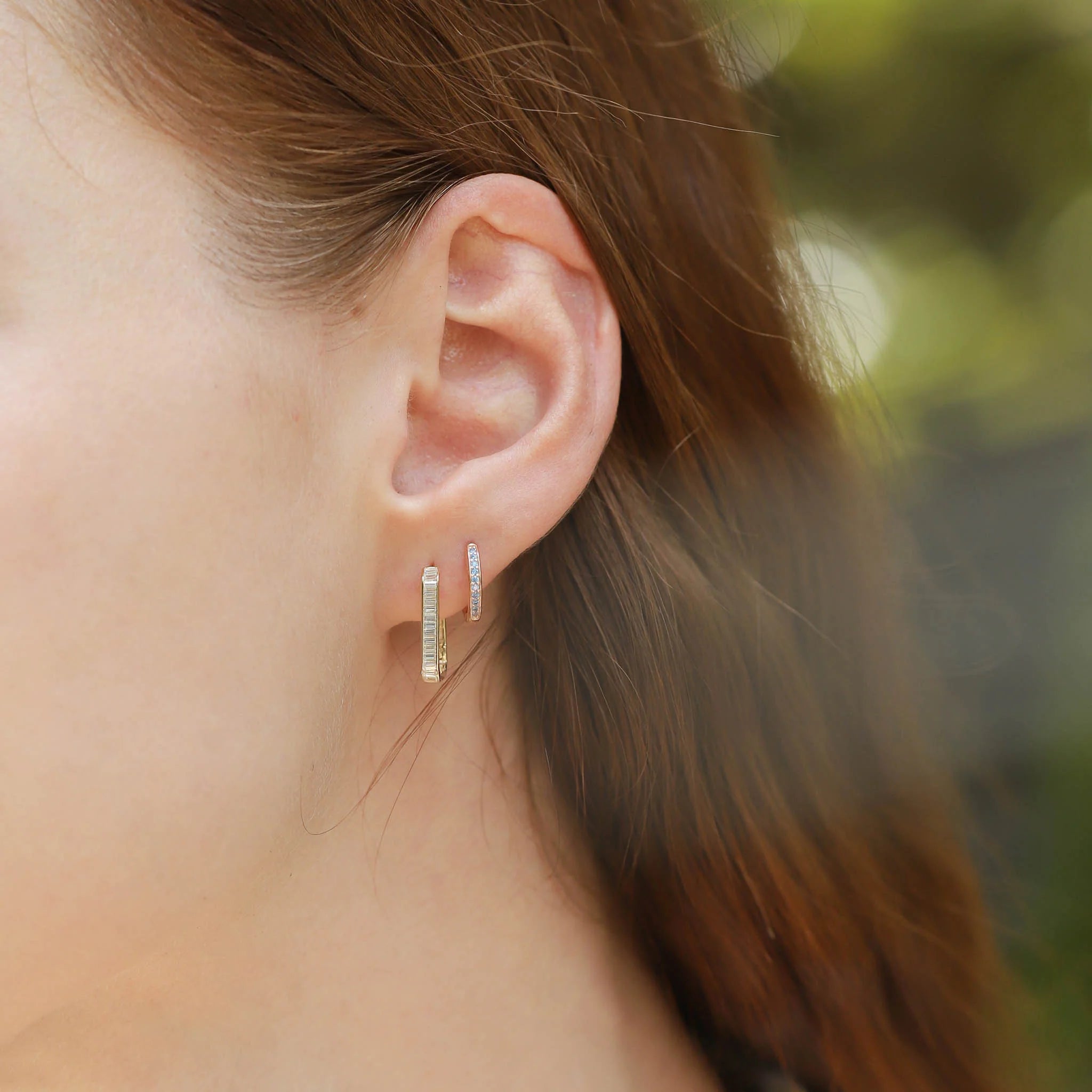 Oval Baguette Huggies in Vermeil