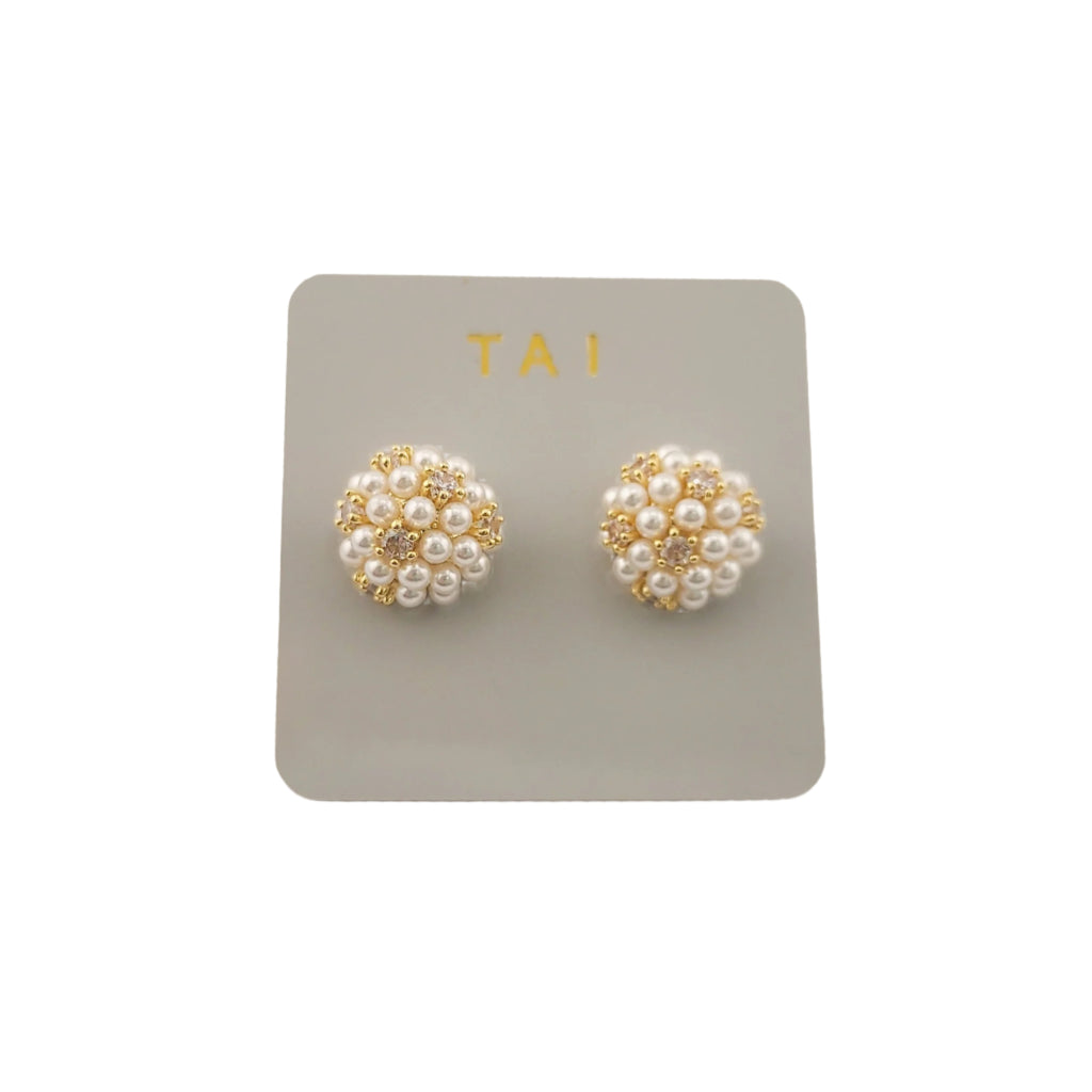 Elevate your everyday elegance with Tai's mixed pearl and cubic zirconia button post earrings. Featuring a stunning blend of classic pearls and sparkling CZ stones, these earrings offer a refined, modern look with timeless appeal. Perfect for day-to-night wear or adding a touch of sophistication to any outfit.