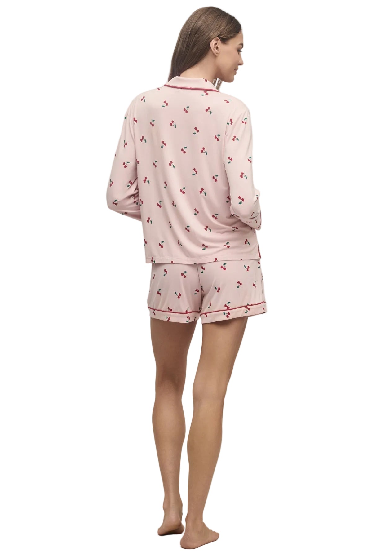 From the Barefoot Dreams Malibu Collection®, slip into comfort with the Ultra Soft Jersey Women’s Cherry Print Pajama Set—a delightfully cozy sleepwear set designed for relaxing nights and lazy mornings. Made from ultra-soft jersey fabric, this two-piece set features a charming cherry print that adds a playful pop to your bedtime routine.