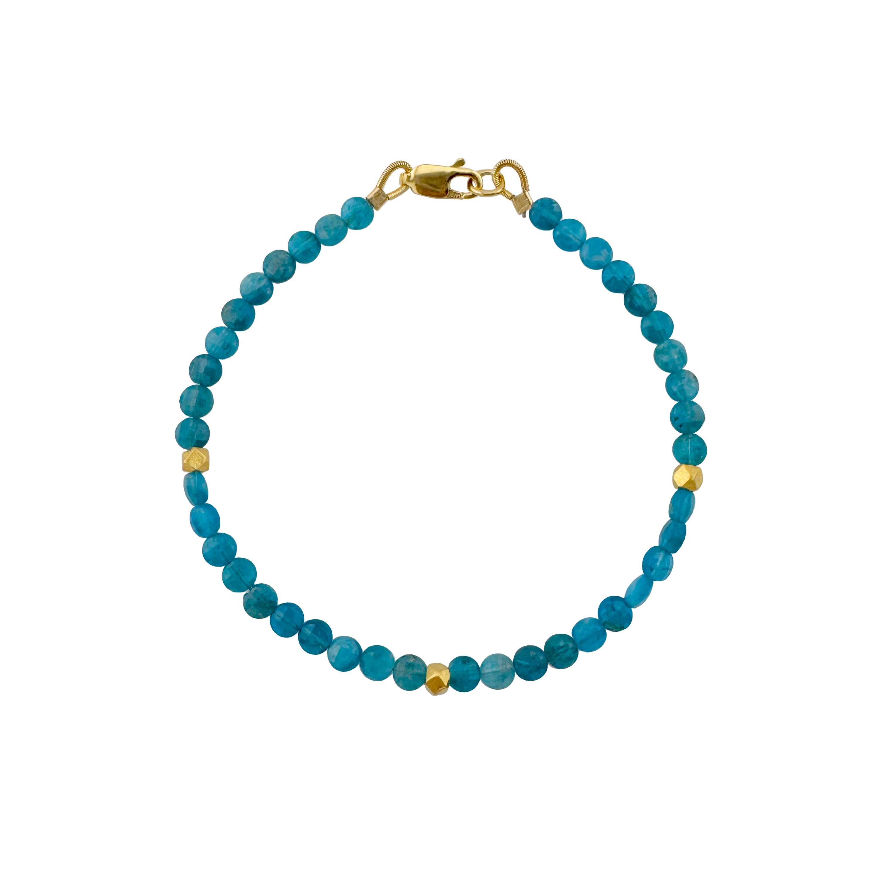Apatite beads bracelet with silver or vermeil. Bracelet is 7 1/2" long. Item# 194-08sb/vb. Our vermeil is sterling silver dipped in 16k gold. Findings are sterling silver and 14k gold fill. Handmade in Oakland, CA.