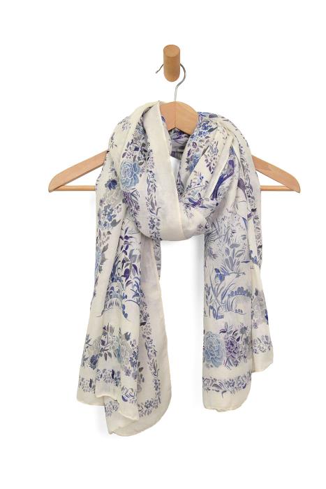 Blue Birds & Flowers Scarf