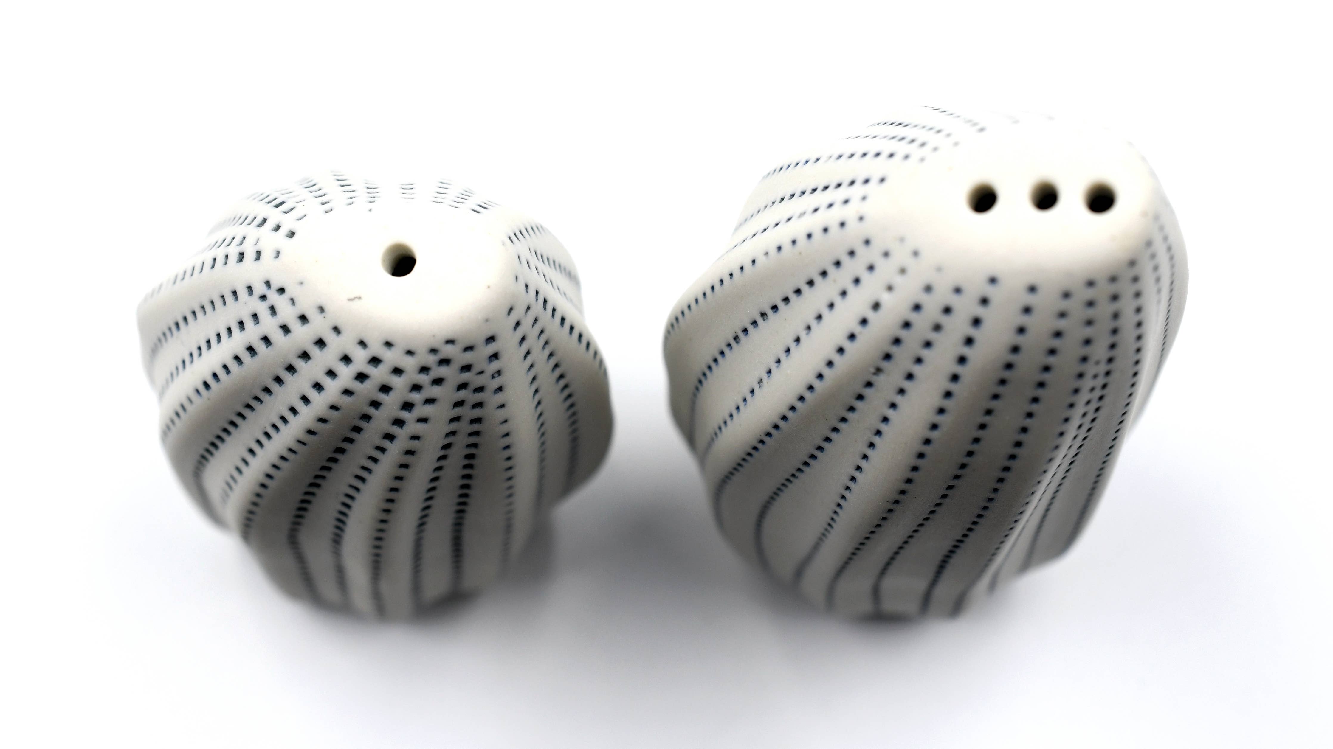 Art Floral's ceramic salt and pepper shaker set, inspired by the ocean's precious ecosystems, presents a visibly rugged texture. Handcrafted by skilled artisans, each piece is uniquely formed. The beauty of its simple form allows it to seamlessly integrate into any decor, offering a serene and uncluttered aesthetic. Its perfect size makes it a charming and functional addition to any kitchen or dining table, ready to season your meals with a touch of coastal elegance.